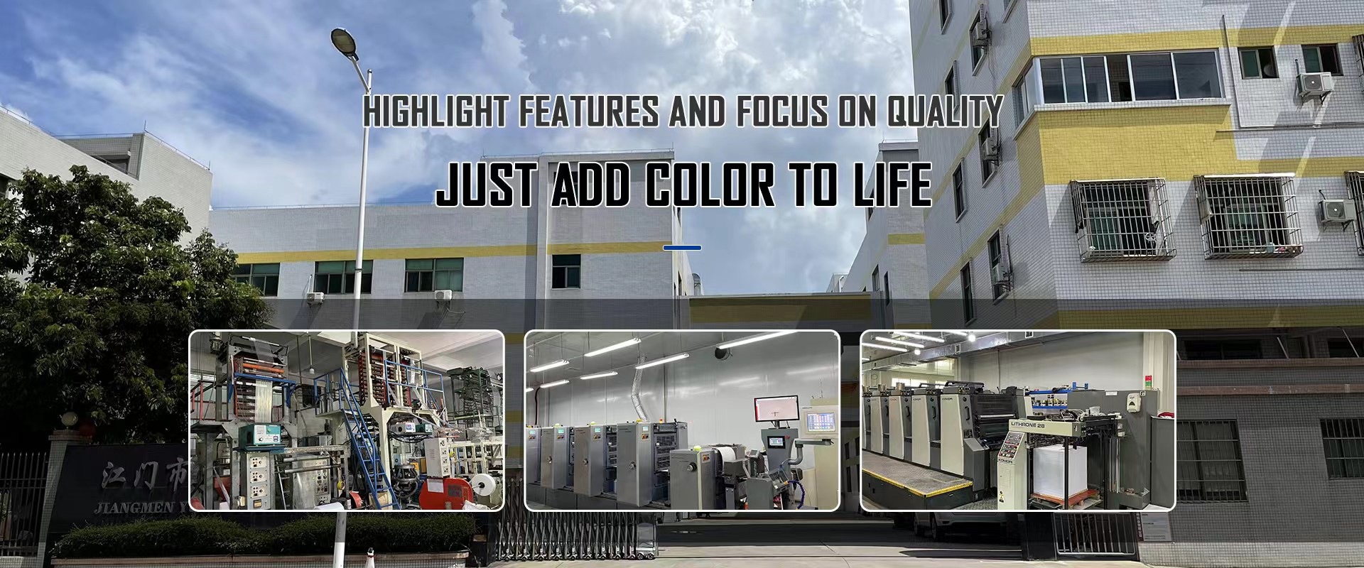 廣東省江門市江海區(qū)裕輝彩色包裝印刷有限公司,創(chuàng)建于1996年。位于珠江三角州著名的僑鄉(xiāng)城市——江門市。從佛開高速、中江高速、江肇高速江門龍灣出口驅(qū)車五分鐘至禮樂北頭咀工業(yè)開發(fā)區(qū)即到,交通非常便利。本公司廠區(qū)獨(dú)立,環(huán)境優(yōu)美,占地面積愈8000平方米,廠房建筑面積愈22500平方米。本公司引進(jìn)了多套國內(nèi)最先進(jìn)技術(shù)水平的塑料彩印復(fù)合生產(chǎn)設(shè)備,包括8色全自動(dòng)電腦套色高速印刷機(jī)、高速復(fù)合機(jī)、分切機(jī)、多用途全自動(dòng)電腦制袋機(jī),檢品機(jī)、噴碼機(jī),全套檢測(cè)試驗(yàn)儀等。具備了國內(nèi)同行業(yè)最優(yōu)良的硬件設(shè)施。在公司150多名管理、生產(chǎn)人才的努力下,我公司已儼然成為了一個(gè)集國內(nèi)軟包裝行業(yè)最優(yōu)秀硬件于一體的,適應(yīng)市場(chǎng)發(fā)展需要的,品質(zhì)一流,優(yōu)良服務(wù)的現(xiàn)代企業(yè)。是目前珠三角最現(xiàn)代化、最具發(fā)展前景的軟包裝企業(yè)之一。公司生產(chǎn)加工各類塑料彩印復(fù)合包裝產(chǎn)品、袋子及精美廣告等。主要制造純鋁、鍍鋁、塑料等包裝膜/袋。為食品、電子產(chǎn)品、服裝、日用品、化妝品、五金制品、農(nóng)藥、獸藥、等行業(yè)提供各種塑料復(fù)合袋及塑料復(fù)合膜的生產(chǎn)和印刷??筛鶕?jù)廠家需要,進(jìn)行包裝規(guī)格圖案設(shè)計(jì)和生產(chǎn);為適應(yīng)市場(chǎng)各種需求,我司還開發(fā)多種防偽技術(shù),例如有:激光鐳射防偽技術(shù)(已獲國家專利)、光變防偽油墨印刷技術(shù)、噴碼防偽技術(shù)和溫變油墨技術(shù)等。